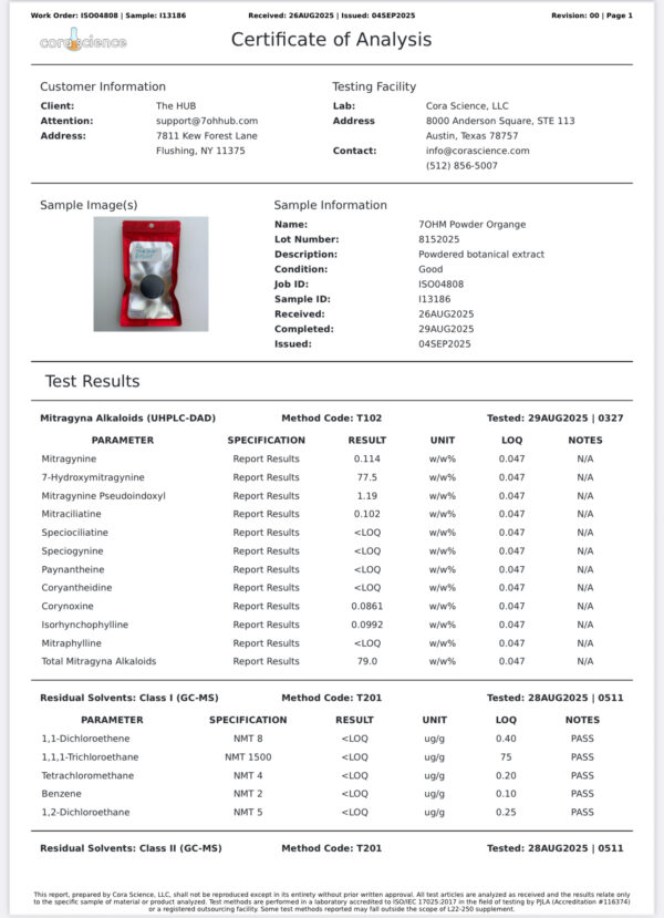Potency You Can Trust – Verified at 79% total alkaloids, including a powerful 77.5% 7-OH concentration.